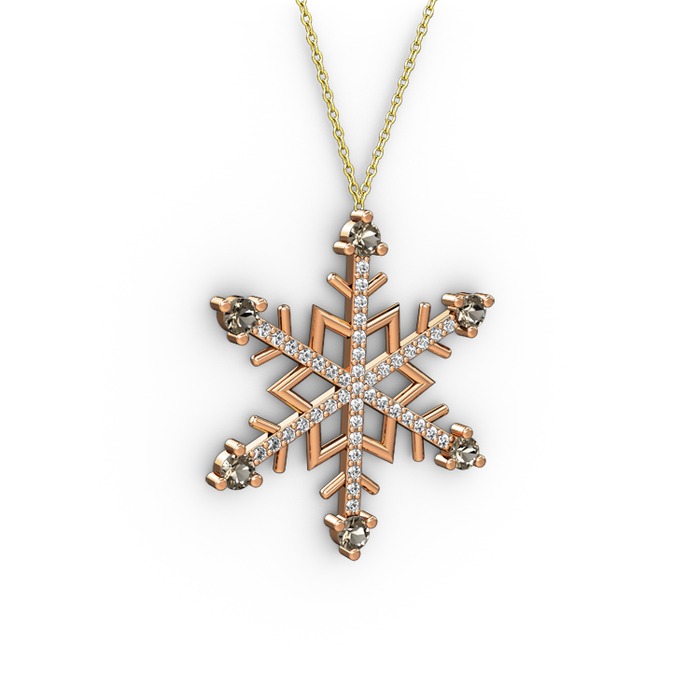 Dumanlı kuvars ve beyaz zirkon 14 ayar rose altın kolye (40 cm altın rolo zincir)