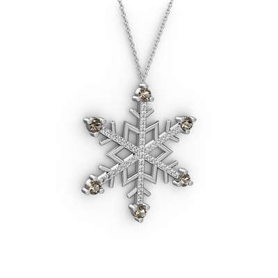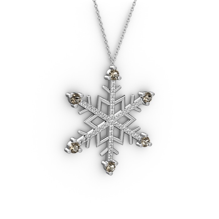 Dumanlı kuvars ve beyaz zirkon 18 ayar beyaz altın kolye (40 cm beyaz altın rolo zincir)