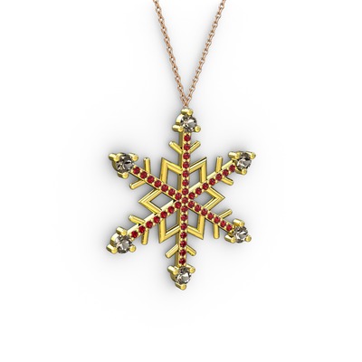 Dumanlı kuvars ve garnet 18 ayar altın kolye (40 cm rose altın rolo zincir)