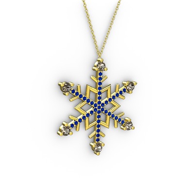 Dumanlı kuvars ve lab safir 18 ayar altın kolye (40 cm altın rolo zincir)