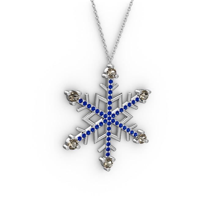 Dumanlı kuvars ve lab safir 8 ayar beyaz altın kolye (40 cm beyaz altın rolo zincir)