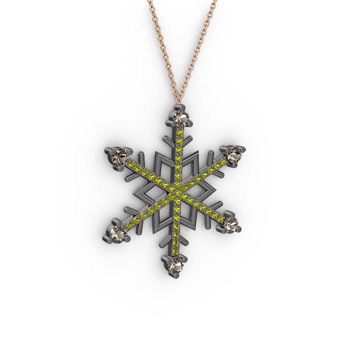 Dumanlı kuvars ve peridot 925 ayar siyah rodyum kaplama gümüş kolye (40 cm gümüş rolo zincir)