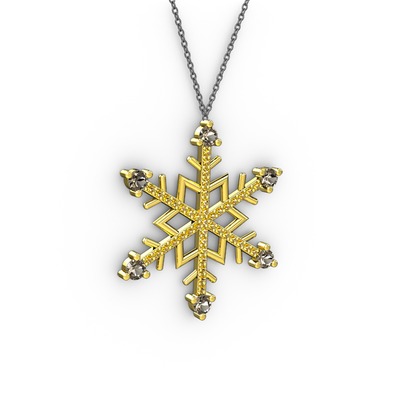 Dumanlı kuvars ve sitrin 14 ayar altın kolye (40 cm gümüş rolo zincir)