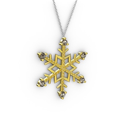 Dumanlı kuvars ve sitrin 18 ayar altın kolye (40 cm beyaz altın rolo zincir)