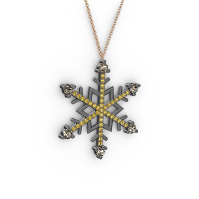 Dumanlı kuvars ve sitrin 925 ayar siyah rodyum kaplama gümüş kolye (40 cm rose altın rolo zincir)