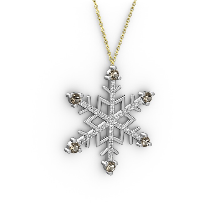 Dumanlı kuvars ve swarovski 8 ayar beyaz altın kolye (40 cm altın rolo zincir)