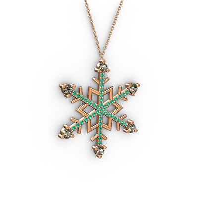 Dumanlı kuvars ve yeşil kuvars 8 ayar rose altın kolye (40 cm rose altın rolo zincir)