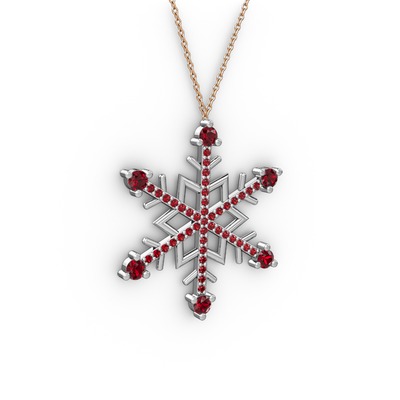 Garnet 18 ayar beyaz altın kolye (40 cm rose altın rolo zincir)