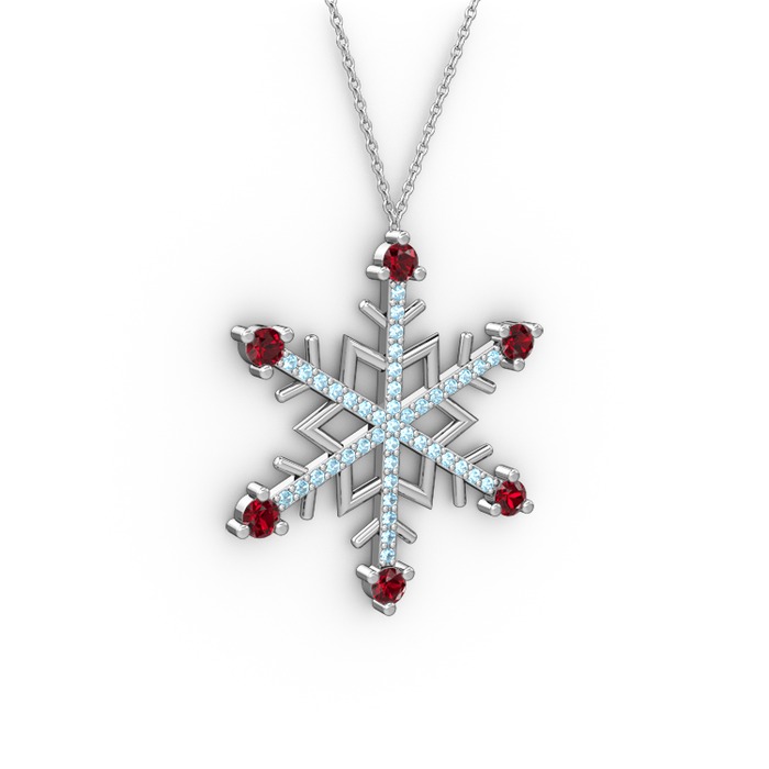 Garnet ve akuamarin 18 ayar beyaz altın kolye (40 cm beyaz altın rolo zincir)