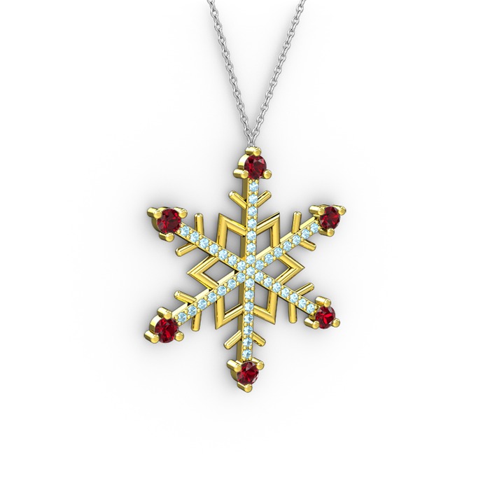Garnet ve akuamarin 925 ayar altın kaplama gümüş kolye (40 cm gümüş rolo zincir)