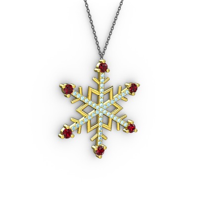 Garnet ve akuamarin 925 ayar altın kaplama gümüş kolye (40 cm gümüş rolo zincir)
