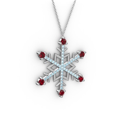 Garnet ve akuamarin 925 ayar gümüş kolye (40 cm gümüş rolo zincir)