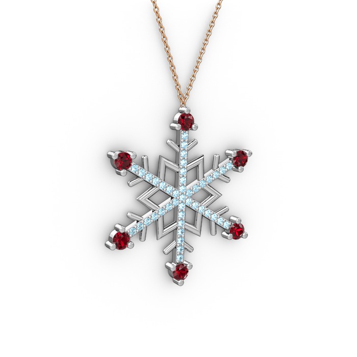 Garnet ve akuamarin 925 ayar gümüş kolye (40 cm rose altın rolo zincir)