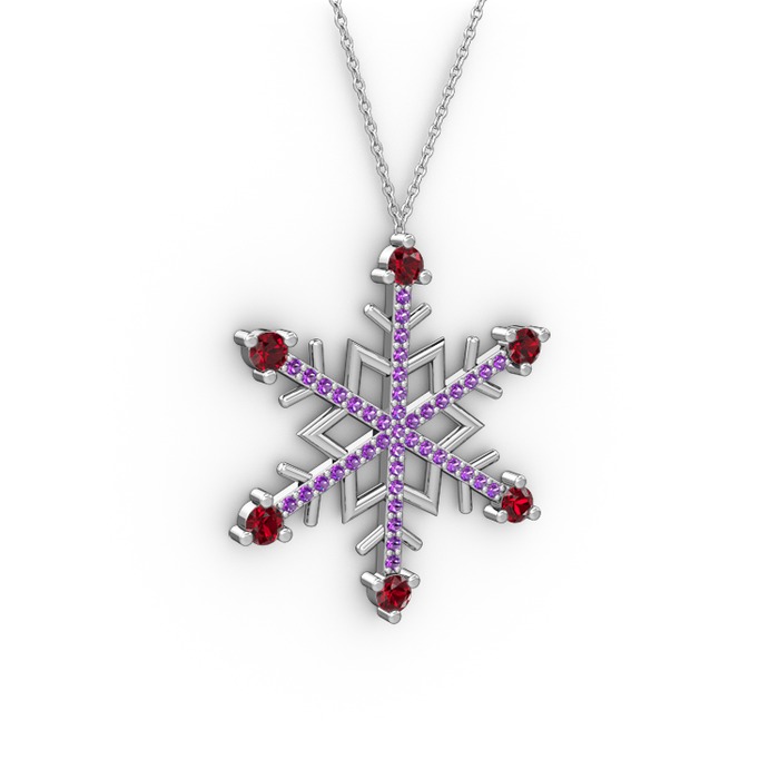 Garnet ve ametist 18 ayar beyaz altın kolye (40 cm beyaz altın rolo zincir)