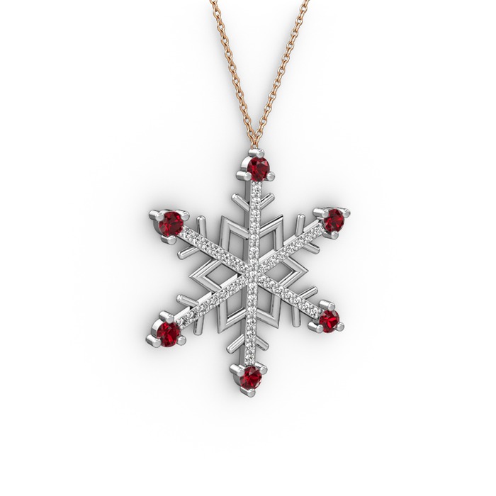Garnet ve beyaz zirkon 925 ayar gümüş kolye (40 cm rose altın rolo zincir)