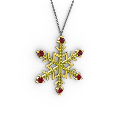 Garnet ve peridot 14 ayar altın kolye (40 cm gümüş rolo zincir)