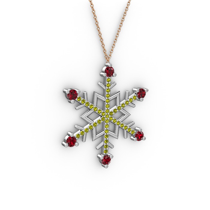 Garnet ve peridot 14 ayar beyaz altın kolye (40 cm rose altın rolo zincir)