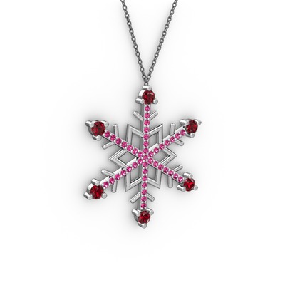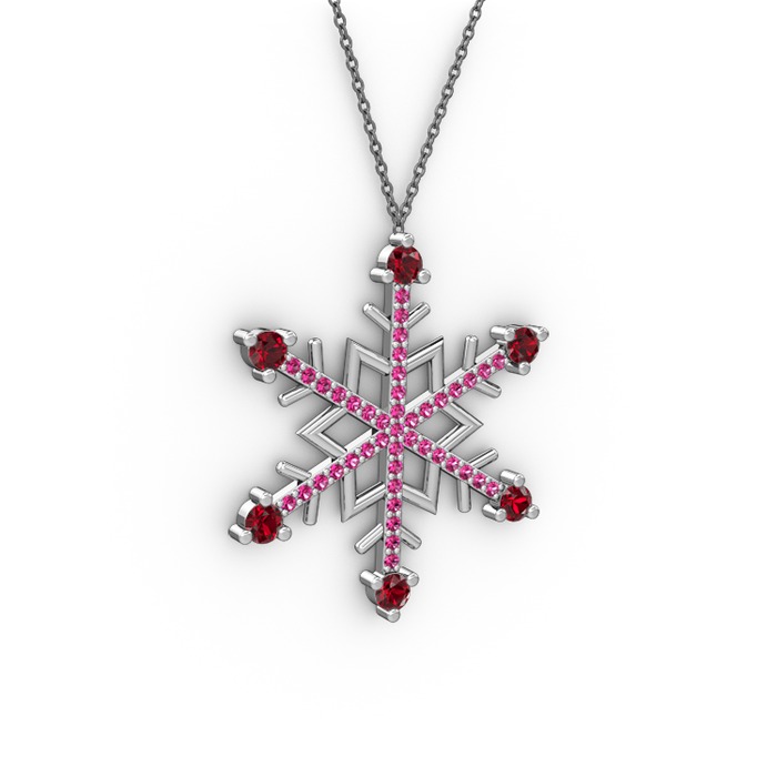 Garnet ve rodolit garnet 8 ayar beyaz altın kolye (40 cm gümüş rolo zincir)