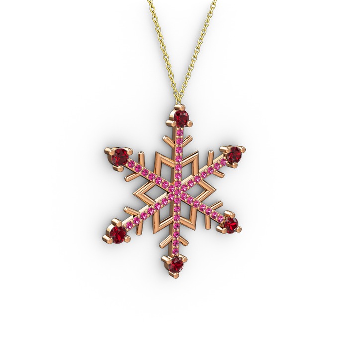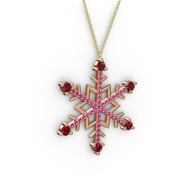 Garnet ve rodolit garnet 8 ayar rose altın kolye (40 cm altın rolo zincir)