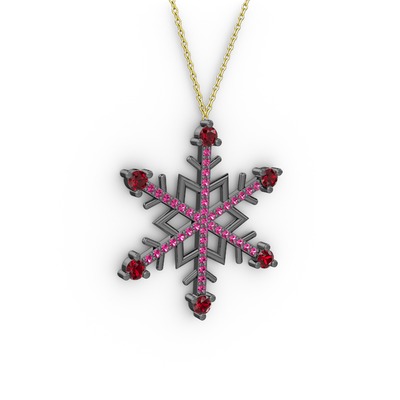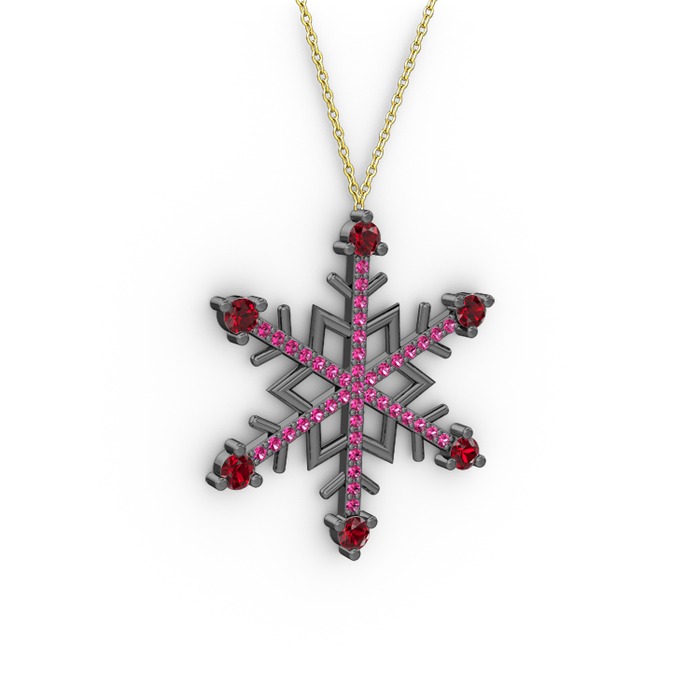 Garnet ve rodolit garnet 925 ayar siyah rodyum kaplama gümüş kolye (40 cm altın rolo zincir)