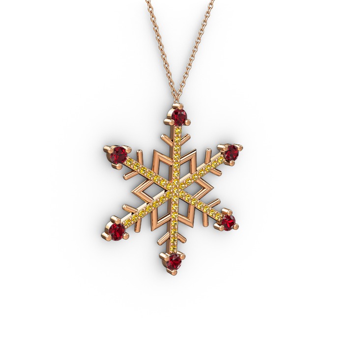 Garnet ve sitrin 8 ayar rose altın kolye (40 cm gümüş rolo zincir)