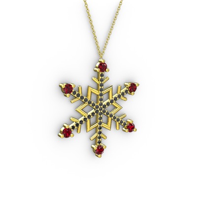 Garnet ve siyah zirkon 14 ayar altın kolye (40 cm altın rolo zincir)