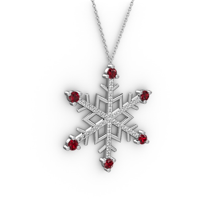 Garnet ve swarovski 14 ayar beyaz altın kolye (40 cm beyaz altın rolo zincir)