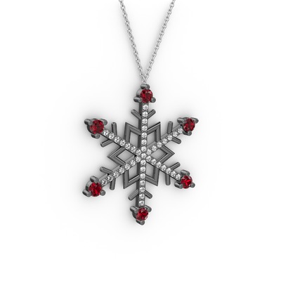 Garnet ve swarovski 925 ayar siyah rodyum kaplama gümüş kolye (40 cm beyaz altın rolo zincir)