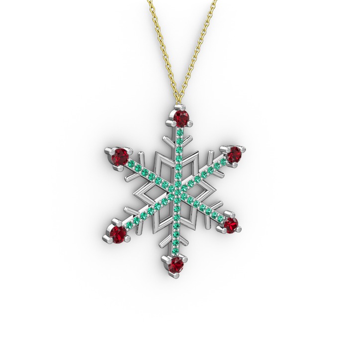 Garnet ve yeşil kuvars 18 ayar beyaz altın kolye (40 cm altın rolo zincir)