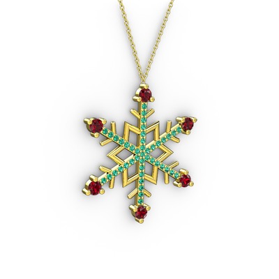 Garnet ve yeşil kuvars 925 ayar altın kaplama gümüş kolye (40 cm altın rolo zincir)