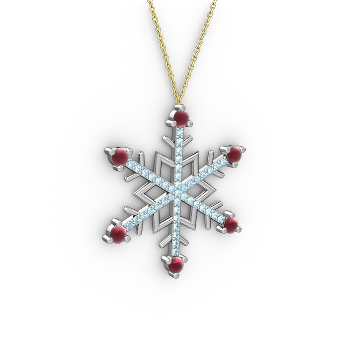 Kök yakut ve akuamarin 14 ayar beyaz altın kolye (40 cm gümüş rolo zincir)