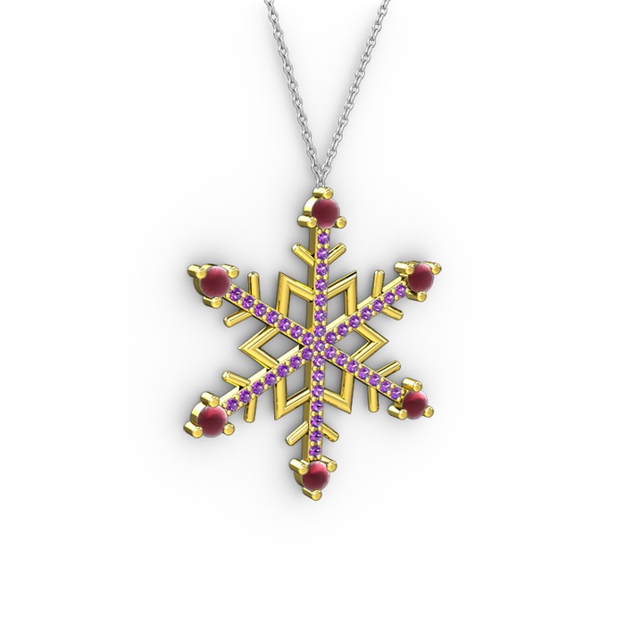 Kök yakut ve ametist 14 ayar altın kolye (40 cm beyaz altın rolo zincir)