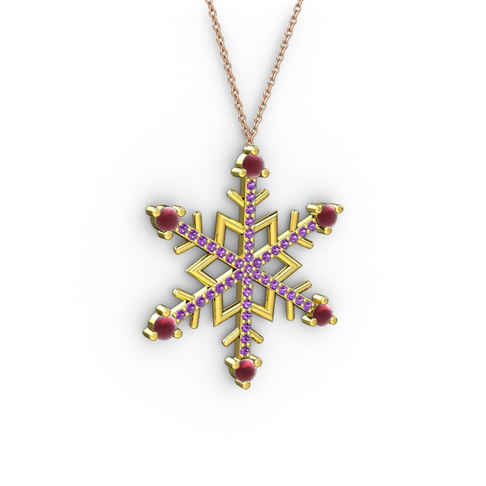 Kök yakut ve ametist 8 ayar altın kolye (40 cm rose altın rolo zincir)