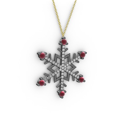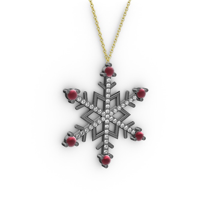 Kök yakut ve beyaz zirkon 925 ayar siyah rodyum kaplama gümüş kolye (40 cm altın rolo zincir)