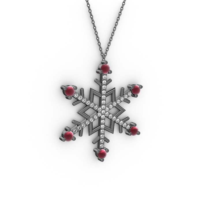 Kök yakut ve beyaz zirkon 925 ayar siyah rodyum kaplama gümüş kolye (40 cm gümüş rolo zincir)
