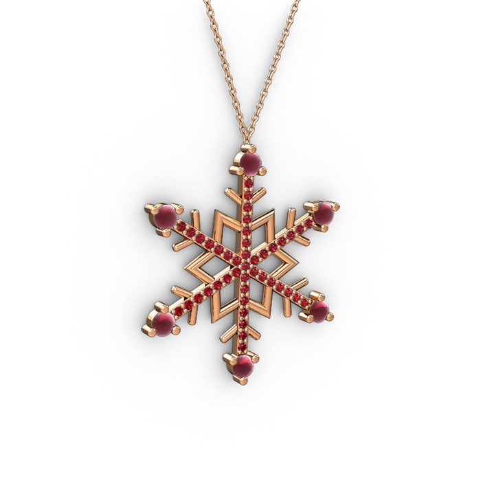 Kök yakut ve garnet 14 ayar rose altın kolye (40 cm gümüş rolo zincir)