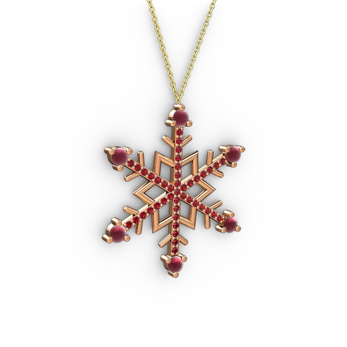 Kök yakut ve garnet 14 ayar rose altın kolye (40 cm gümüş rolo zincir)
