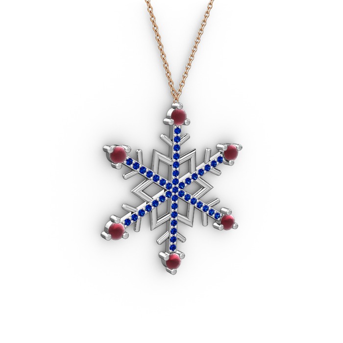 Kök yakut ve lab safir 18 ayar beyaz altın kolye (40 cm rose altın rolo zincir)