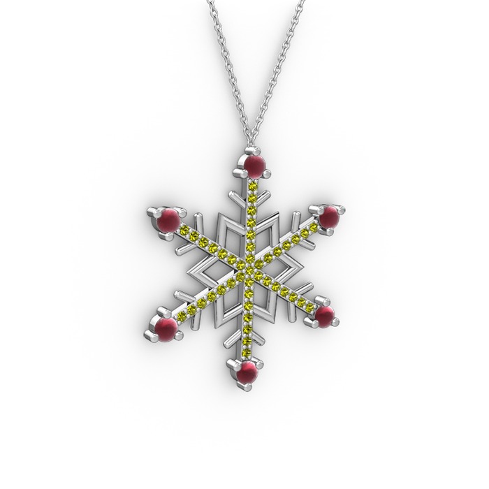 Kök yakut ve peridot 14 ayar beyaz altın kolye (40 cm beyaz altın rolo zincir)