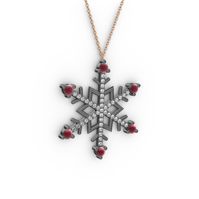Kök yakut ve pırlanta 925 ayar siyah rodyum kaplama gümüş kolye (0.473 karat, 40 cm gümüş rolo zincir)
