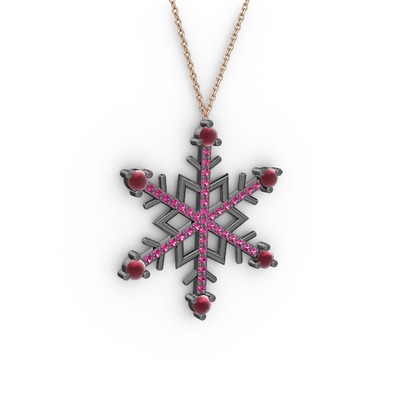 Kök yakut ve rodolit garnet 925 ayar siyah rodyum kaplama gümüş kolye (40 cm gümüş rolo zincir)