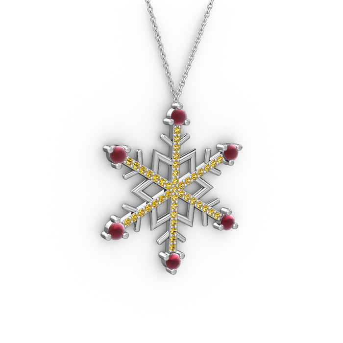 Kök yakut ve sitrin 14 ayar beyaz altın kolye (40 cm beyaz altın rolo zincir)