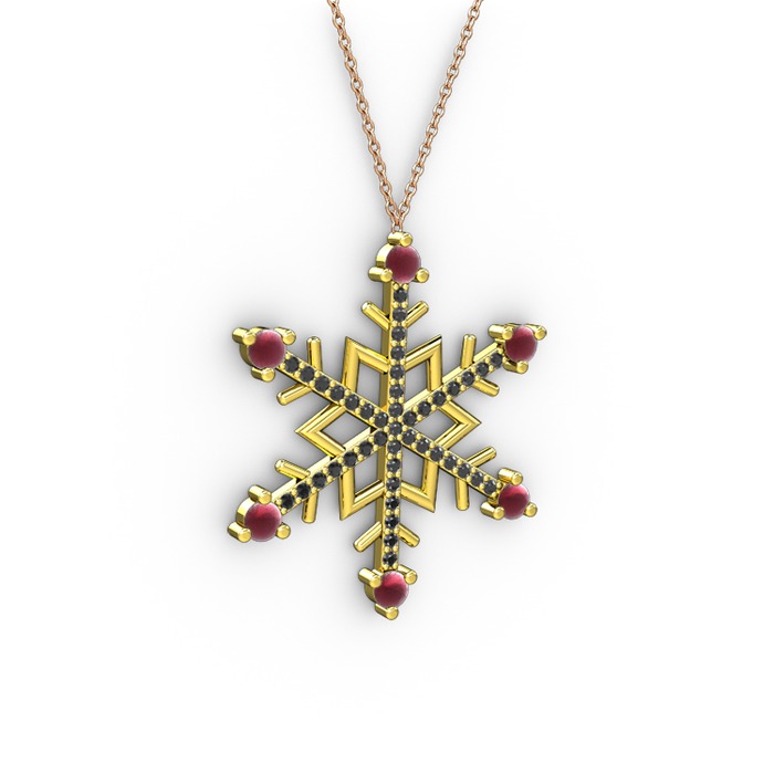 Kök yakut ve siyah zirkon 14 ayar altın kolye (40 cm gümüş rolo zincir)