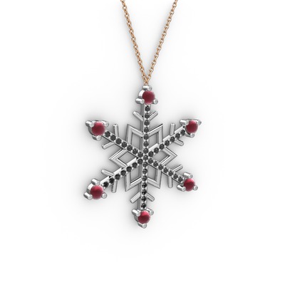 Kök yakut ve siyah zirkon 8 ayar beyaz altın kolye (40 cm rose altın rolo zincir)