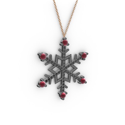 Kök yakut ve siyah zirkon 925 ayar siyah rodyum kaplama gümüş kolye (40 cm rose altın rolo zincir)