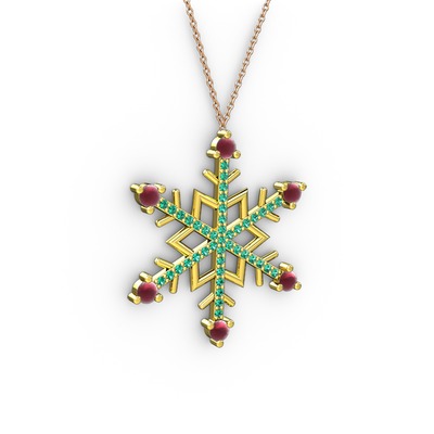 Kök yakut ve yeşil kuvars 14 ayar altın kolye (40 cm rose altın rolo zincir)