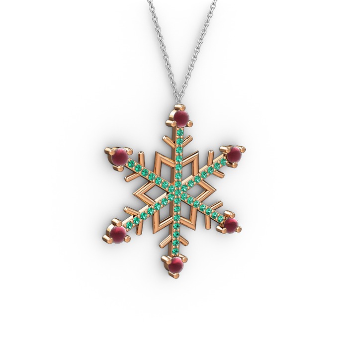 Kök yakut ve yeşil kuvars 8 ayar rose altın kolye (40 cm gümüş rolo zincir)