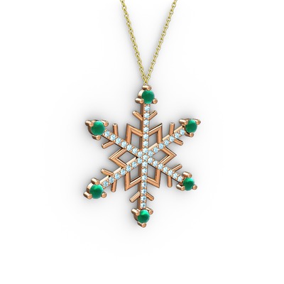 Kök zümrüt ve akuamarin 925 ayar rose altın kaplama gümüş kolye (40 cm gümüş rolo zincir)