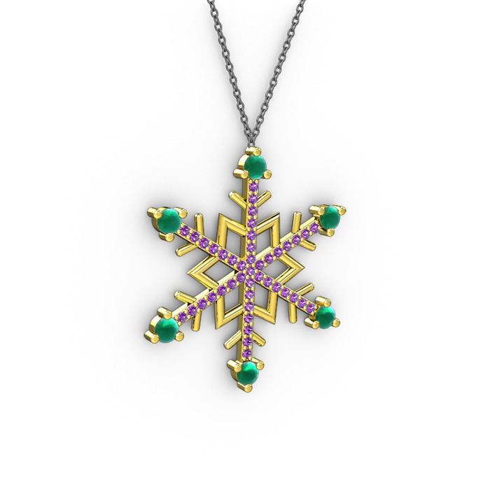 Kök zümrüt ve ametist 18 ayar altın kolye (40 cm gümüş rolo zincir)