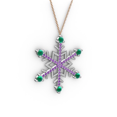 Kök zümrüt ve ametist 925 ayar gümüş kolye (40 cm rose altın rolo zincir)